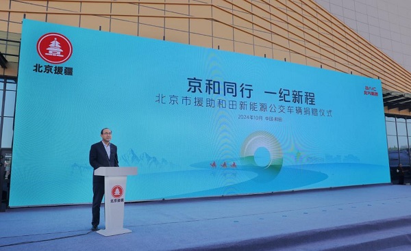 北汽集团党委常委、副总经理,北汽福田党委书记、董事长常瑞在捐赠仪式上致辞,常瑞表示,深入贯彻党中央治疆方略,对口支援、助力新疆发展是北京市属企业义不容辞的政治使命,和田地区是北京市深入贯彻国家对口援疆政策的前沿阵地。