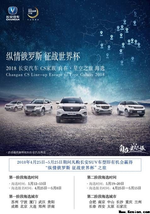 另外,长安汽车即将在6月份开启第四季星空之旅运动,即日起至5月25日,购长安CS车型均有机会搭乘星空之旅,纵贯俄罗斯,同新CS75一路探索星空,畅享世界杯。