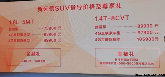 此外,发布会上吉利汽车公布:购买新远景SUV的用户可享受金融礼、幸福礼、老友礼三重好礼。其中金融礼是指用户贷款购车可享受24期0息36期低息;而幸福礼是指参与幸福助学运动,购车时可享受价值4000-5000元幸福大礼包。老用户保举同伙购车,最高可享有每次500元油卡老友礼。