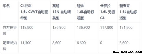 在配置对比中,C4世嘉 1.6LCVVT主动豪华型相较售价为12.69万元的别克英朗15N主动精英型,在价格上就要优惠7100元,而配置相较于英朗不减反增,例如倒车视频影像、全系升级全新一代7英寸彩色多媒体触屏体系等多种配置,无论是在安全性上照旧科技性上,都大幅超越了对手。而相对于两款售价差距更大的车型——朗逸 1.6L主动舒适型与新宝来1.6L主动舒适性,C4世嘉1.6LCVVT主动豪华型的性价比上风显明。