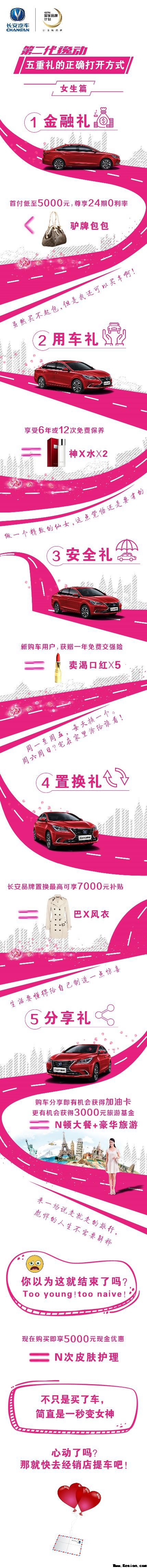 第二代逸动具有媲美合资品牌的实力,并且如今购买第二代逸动全系车型即享5000元现金优惠,还有五重好礼。一重金融礼,首付低至5000元,24期0利率。买台空调的钱付首付,就可以把车开回家。二重用车礼,享受6年或12次免费保养,这保养费用省下来可以用来换个小件家具。三重安全礼,新购车用户,获赠一年免费交强险。可以省下950元,好好吃一顿。四重置换礼,长安品牌车型置换补贴高至6000元(限牌区域享更多优惠)这笔钱可以买台不错的空气净化器,阔别污染。五重分享礼,最高可领600元油卡,更有机会赢取3000元旅游基金。这次运动截止到八月三十一日,月尾运动就结束了,赶紧举措起来吧!