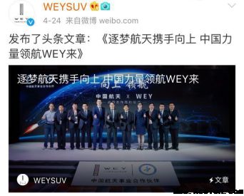 分析来看,两家车企与航天领域的合作照旧有所区别的。一个是“民营队”、一个是“国家队”。对于两家车企而言,跨界进入航天领域都是第一次;在WEY之前,国家级的火箭发射史上,还从未与哪个企业联名过,这对于中国汽车工业与航天事业均具备紧张意义。