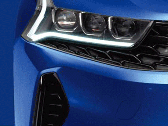 ·凯酷依然延续了自第三代K5开始的运动风格,虎啸式前脸全面进化,前格栅官方命名为“鲨齿式”,进气口的尺寸有所加宽,调整之后的雾灯位置被形似獠牙的装饰取代,前脸最大的吸睛点便是“心跳式”LED大灯,引擎盖上最外侧隆起的两条筋线一直延伸融于灯组内。
