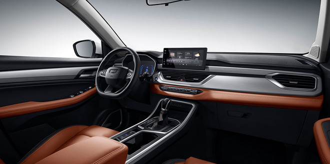 外观方面,自动豪华型采用吉利家族“水波涟漪”设计风格,保险杠下方梯形设计搭配左右两边面积较大的进气口,整体视觉效果力量感十足。车身侧面,这款新车使用了悬浮式车顶设计,搭配尾部点缀展翼式尾灯,辨识度更高。
