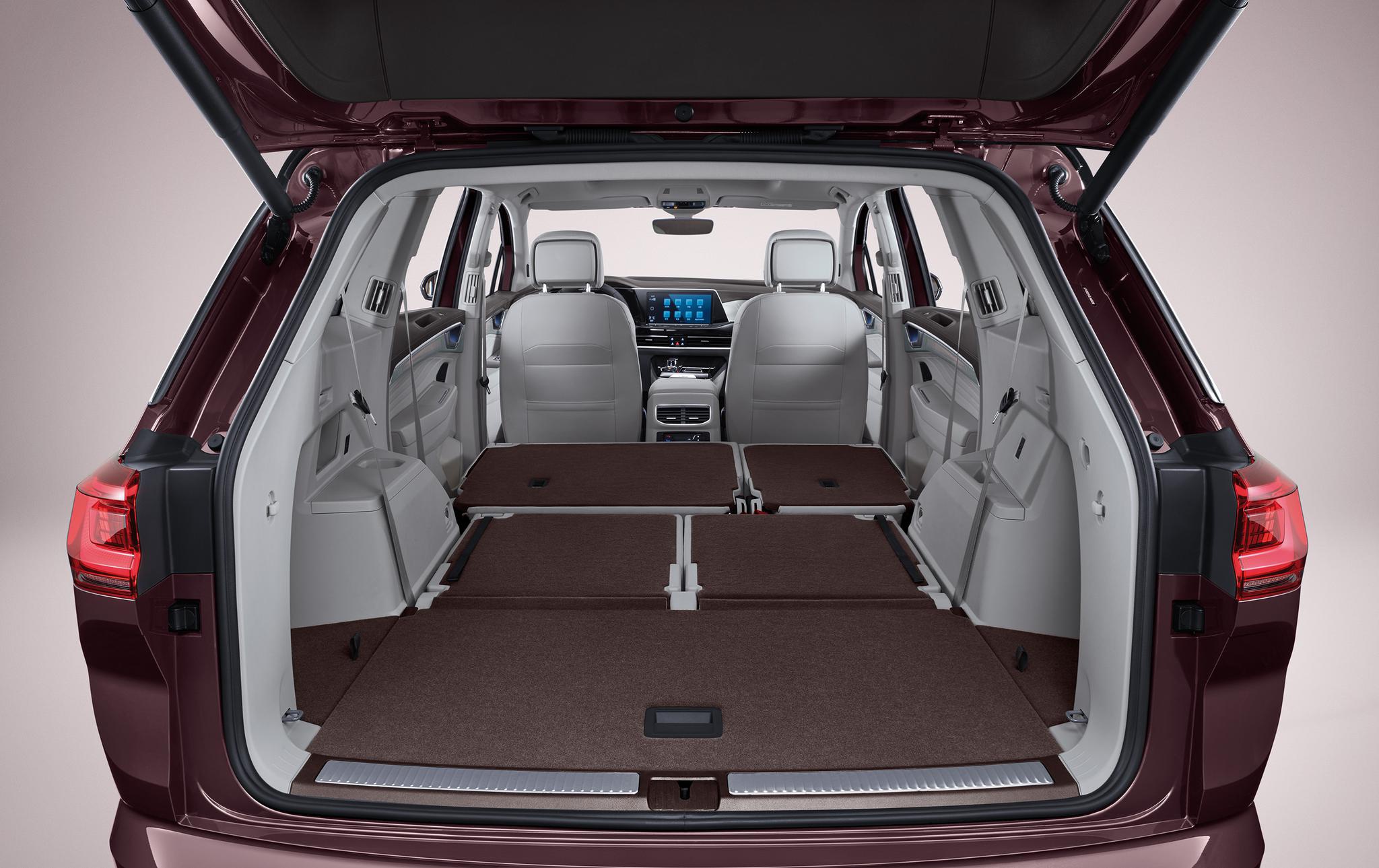 当将第二、三排座椅放倒后,可获得进深超过2米的“纯平”空间,扩展出高达2451L的超大后备箱空间。