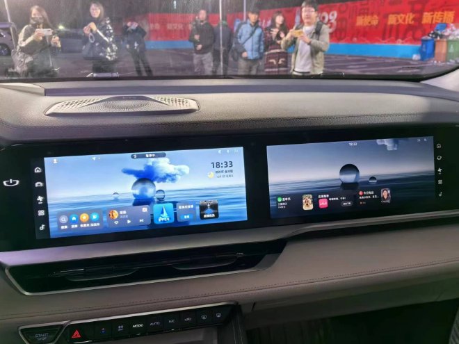 星越L智擎的液晶仪表盘、中控屏幕和副驾驶娱乐屏都是12.3英寸,中控屏幕主要负责车辆的行驶信息、驾驶模式、空调、导航、车辆系统控制等,而副驾驶屏幕则是主要负责娱乐,同时还能支持导航的设定等功能。
