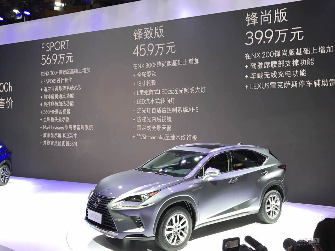 在2017成都车睁开幕当日,雷克萨斯中期改款NX车型上市,新车分为NX200、NX300和NX300h,售价区间为31.8-56.9万。