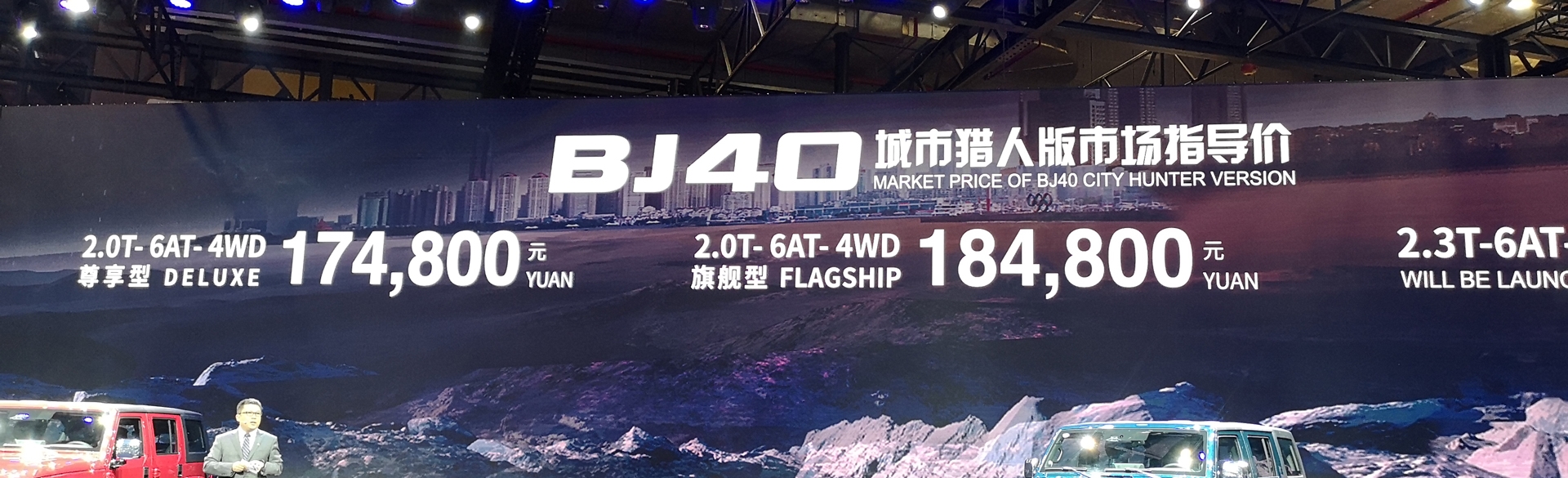 在已经开幕的上海车展上,北京汽车BJ40城市猎人版正式上市,新车先期推出两款车型,售价区间为17.48-18.48万元,此外2.3T车型将于6月份上市。