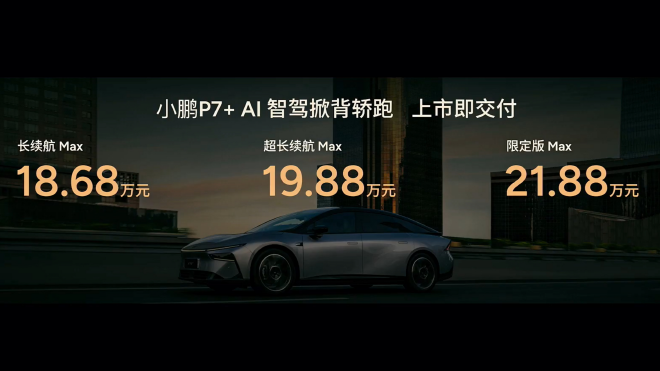11月7日晚,小鹏P7+正式上市,共推出三款车型(含一款限定版),售价区间18.68万-21.88万元。据官方数据,新车开售12分钟内大定已突破10000台。外观推出新月银、暗夜黑、星云白、星暮紫、云贝米共5款配色。新车在设计方