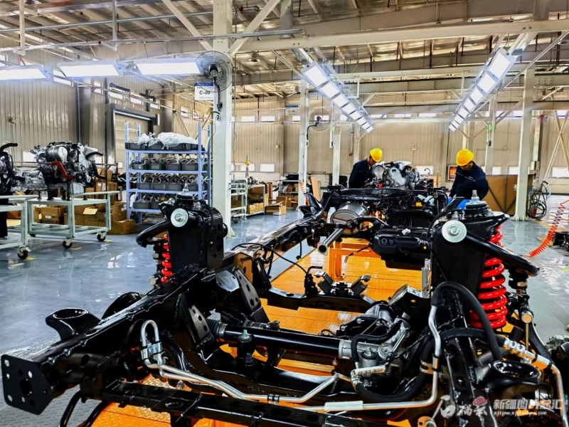 物料配送车间,一个个汽车零部件码放整齐;生产线上,员工正加紧拼装底盘;组装车间里,几名工人正对组装完成的汽车进行全面体检……走进新疆皖疆汽车有限公司,厂区内生产车间、检测装厢车间、生产准备车间、试车跑道等区域一派繁忙景象。