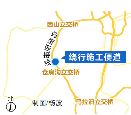 8月10日起,因东二环项目施工,乌拉泊到西山方向车辆在3595公里+590米处,也就是经过仓房沟立交桥2公里位置,需要进入施工便道通行。一旦施工便道发生交通事故,很可能引发交通拥堵,为此高速交警也提醒广大驾驶员在进入施工路段之前注意施工提示标牌,提前减速变更车道。记者从
