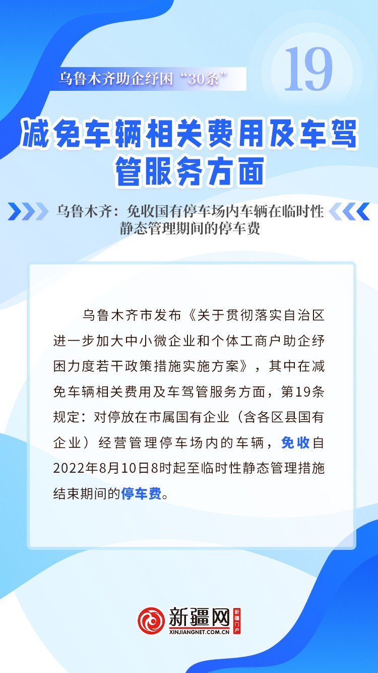 车辆停放在乌鲁木齐站南、北广场、长途客运站地下停车场的车主们,好消息来啦。按照自治区和乌鲁木齐市出台的助企纾困政策,经开区(头屯河区)将免收自今年8月10日8时起至乌鲁木齐市实行重点城区临时性静态管理措施结束